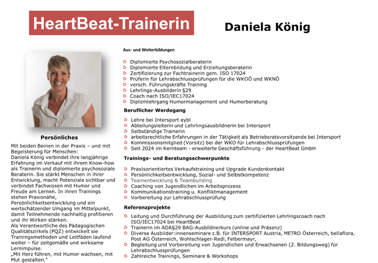 5. HeartBeat GmbH (seit 2018 Trainerin, Kundenbetreuung & Leitung PQZ)